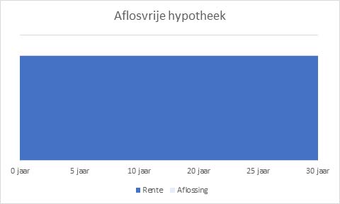 Wat is een aflosvrije hypotheek? Het wordt zegt het al “aflosvrij”, er wordt tijdens de looptijd van de hypotheek niets afgelost. Je betaalt alleen rente. Aan het eind van de looptijd moet de hypotheek in één keer afgelost worden. Deze vorm wordt tegenwoordig alleen nog in combinatie met een andere hypotheekvorm gesloten. Hierbij mag het aflosvrijedeel maximaal 50% van de waarde van de woning bedragen.
